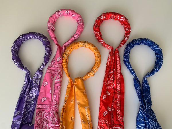 Cerchietto per capelli con fiocco da annodare, fantasia bandana disponibile in vari colori.