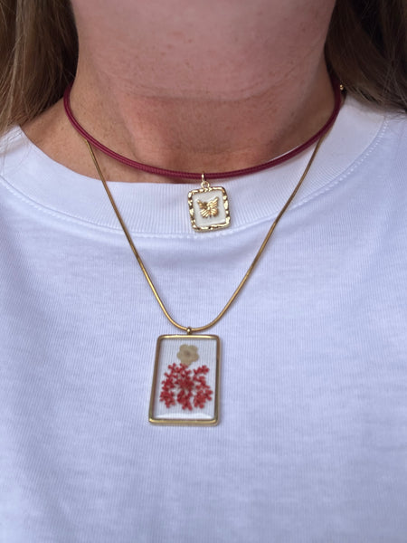 Una bellezza questa collana con ciondolo realizzato a mano con all’interno una combinazione di fiori secchi racchiusi nella resina. Da avere! Tutti! Facilissima da abbinare ad altri look DiDi gioielli!