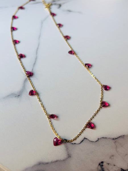 Collana multicuori sfaccettati rosso rubino, un tocco di passione e amore al tuo look! Argento925, placcato gold18kt, anallergico e Made in Italy. 45cm totali regolabile con allungo.