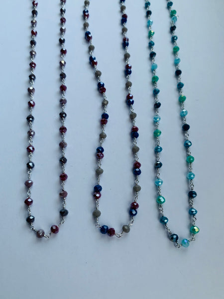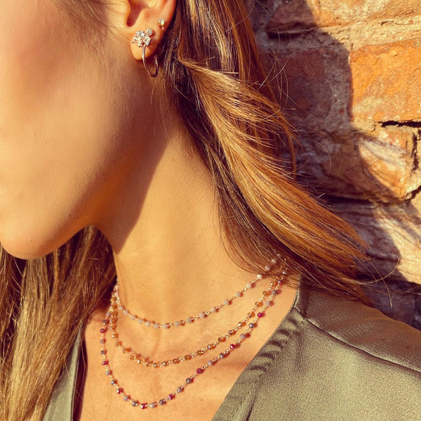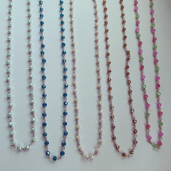 Una delle nostre collane più vendute, un must have assoluto! Collana con cristalli mono tono o multicolor, disponibile in tante varianti. Argento925 placcato oro rosa o bianco. Lunghezza 40+5cm, regolabile.