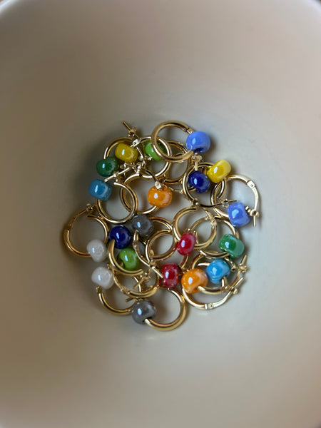 Hoops in argento 925 placcato gold18kt e perle in vetro di murano. anallergico, Made in Italy