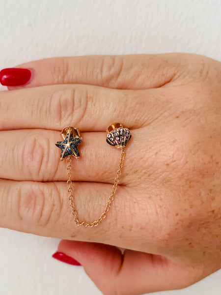 Mono Orecchino con catena Stella Conchiglia Blu,