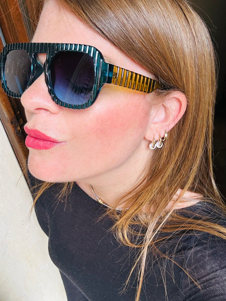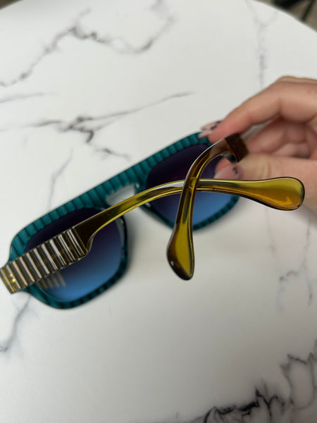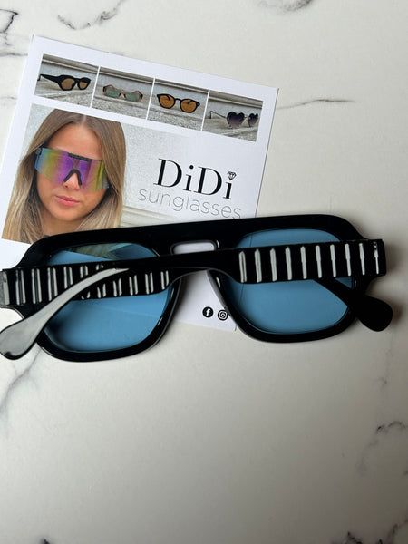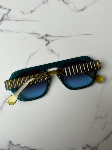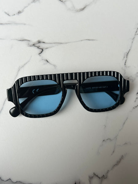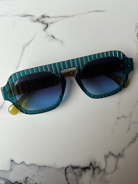 Disponibile in più varianti: classico nero con lenti azzurre, color vino super attuale con lenti sfumate e il color Blu che ha come particolarità le aste color lime.